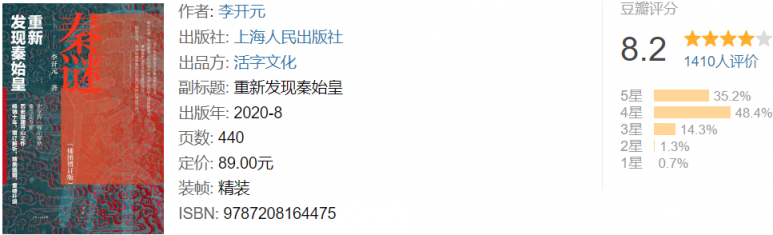 所以《秦谜》这本书,不是一本常规的历史着作,而是一本大胆的历史推理作品。