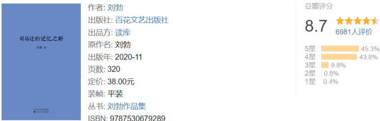 《司马迁的记忆之野》作者刘勃,总是擅长独辟蹊径,从我们意想不到的角度观察历史。
