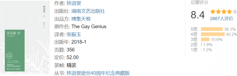 在《苏东坡传》中,林语堂为我们讲述了一个不一样的苏东坡,一个与世人眼中不同的苏东坡,一个政绩卓着、爱民如子、文韬武略兼备的苏东坡,一个虽累遭打击而乐观情怀不变的苏东坡。